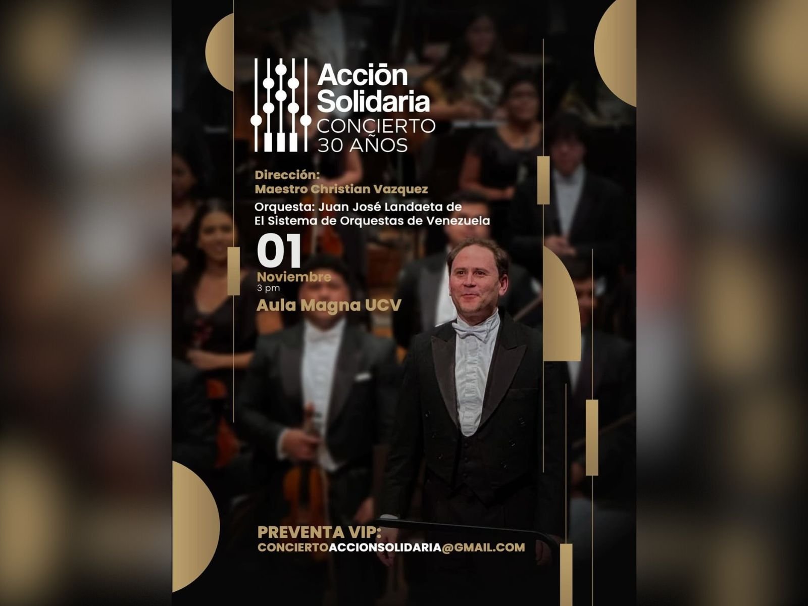 La organización no gubernamental Acción Solidaria celebrará tres décadas de labor el 1° de noviembre con un concierto benéfico a cargo de la Orquesta Sinfónica Juan José Landaeta, perteneciente al Sistema Nacional de Orquestas y Coros Juveniles e Infantiles de Venezuela.