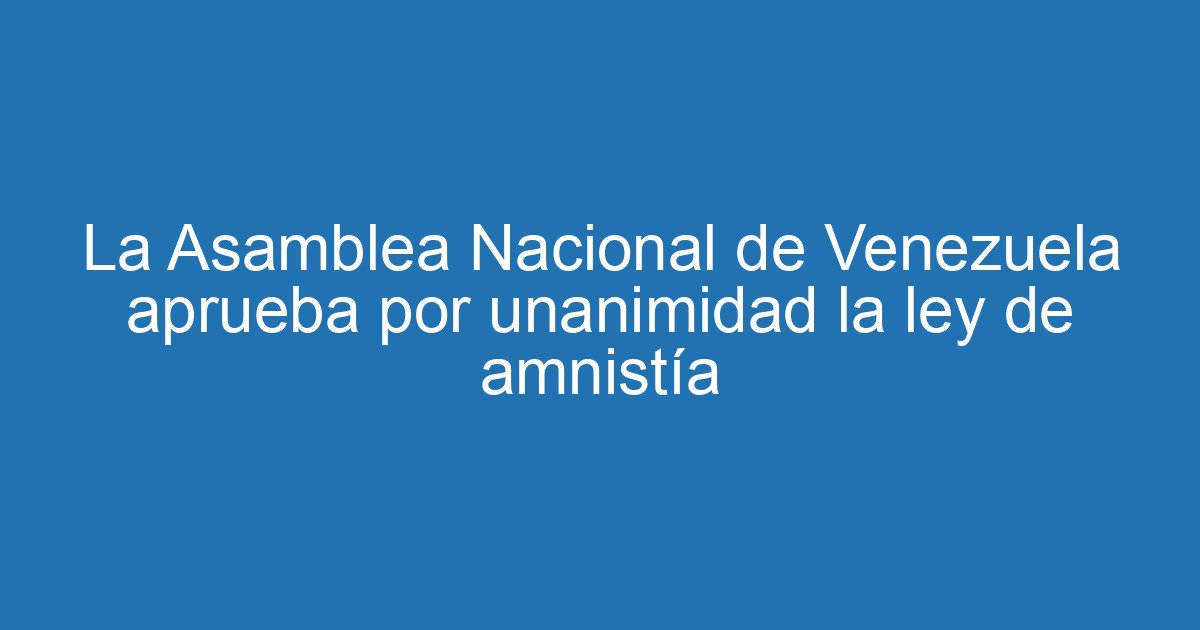 La Asamblea Nacional de Venezuela ha aprobado finalmente este jueves una ley de amnistía con la que cientos de presos políticos podrían salir de las cárceles y los perseguidos políticos que están en la clandestinidad o en el exilio queden libres de causas judiciales. La norma se ha aprobado por unanimidad, luego de dos semanas de consultas con varios sectores políticos y de la sociedad civil. “Ojalá que esa actitud y esa disposición que hemos demostrado sea auspicio de un nuevo tiempo político que debe transitar el país”, celebró el presidente de la la Asamblea y hermano de la presidenta, Jorge Rodríguez. La ley ha recogido gran parte de las precisiones jurídicas que han negociado los diputados opositores para garantizar un mayor alcance, pero taxativamente han sido excluidos los militares —174 de unos 600 presos políticos aún encarcelados— que están señalados por delitos de rebelión.