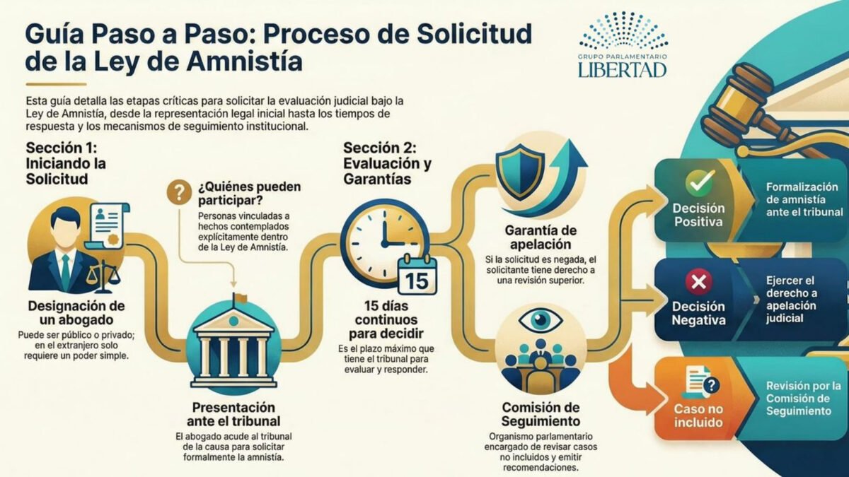 La información compartida por Algarra Suárez establece cinco pasos obligatorios para tramitar el beneficio de la amnistía.