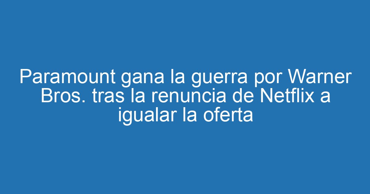 Después de una histórica batalla que se ha prolongado durante tres meses, Paramount Skydance está a un paso de hacerse con los históricos estudios cinematográficos de Warner Bros Discovery tras la renuncia de Netflix a mejorar su oferta.