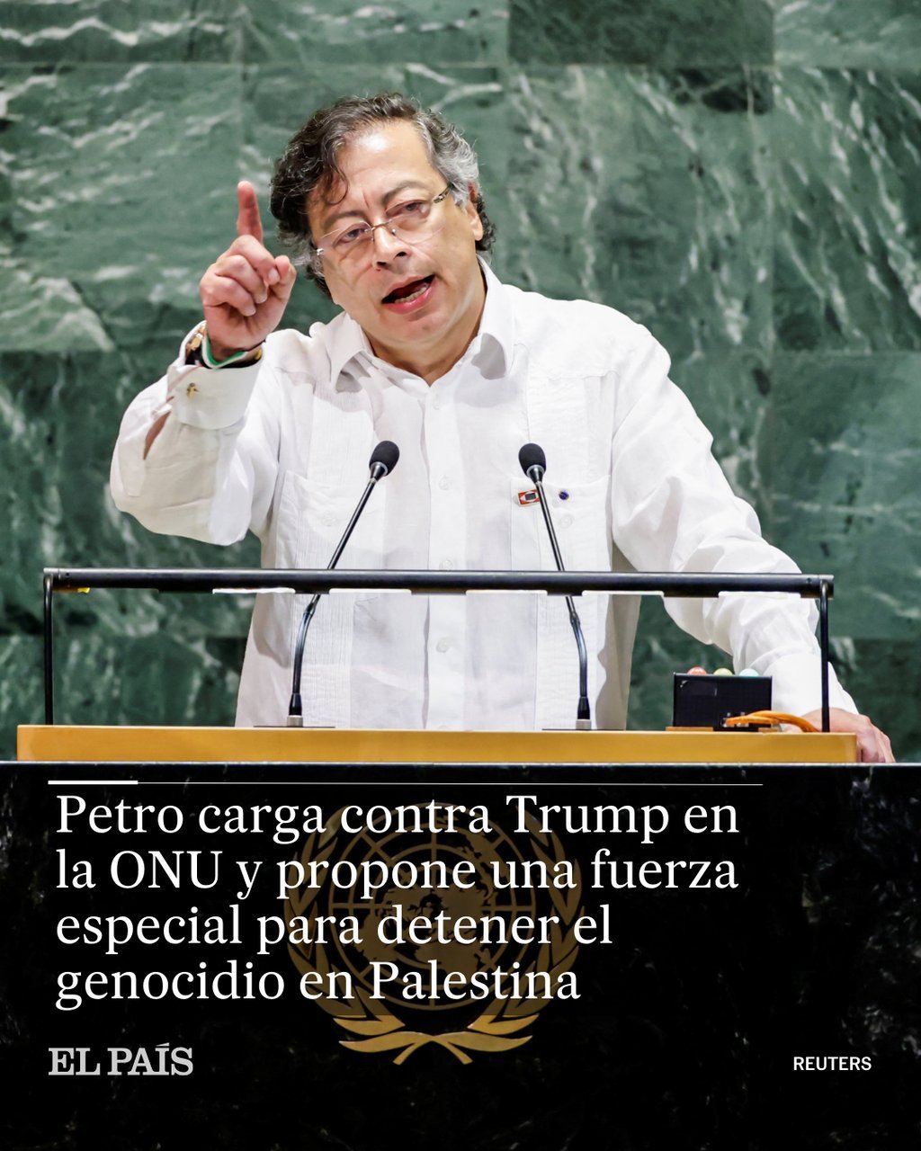 Con un discurso muy crítico con la Administración de Donald Trump, que tildó insistentemente de “tiranía”, Gustavo Petro ha propuesto ante los líderes mundiales enviar a Gaza una fuerza armada que detenga el genocidio contra el pueblo palestino. El presidente de Estados Unidos “se hace cómplice del genocidio, porque es genocidio y hay que gritarlo una y otra vez”, ha lanzado este martes el de Colombia en su cuarta y última intervención como jefe de Estado ante la Asamblea General de Naciones Unidas, reunida en Nueva York. “Este recinto es testigo mudo y cómplice de un genocidio”, ha reiterado antes de proponer sin demasiados detalles conformar “una fuerza armada para defender la vida del pueblo palestino”.
