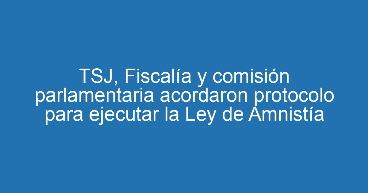 Autoridades de Venezuela establecieron este viernes 20 de febrero un protocolo, del que aún se desconoce su contenido, para la aplicación «expedita» de la Ley de Amnistía aprobada en la víspera por la Asamblea Nacional (AN, Parlamento) para casos de presos políticos de los últimos 27 años. El mecanismo fue acordado en una reunión entre representantes del Tribunal Supremo de Justicia, la Fiscalía y la comisión parlamentaria encargada del seguimiento de la norma.